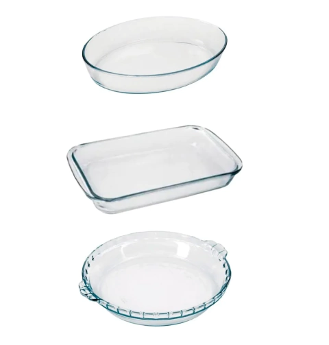 Set X3 Asadera Molde Oval Clásica Marinex Vidrio Templado